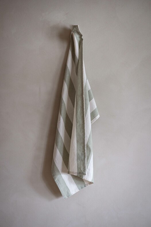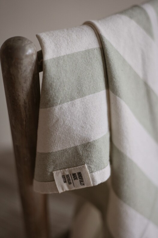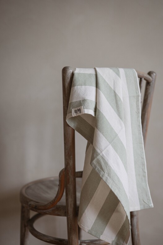 Kökshandduk i fin blockrand, tillverkad av återvunna material | Från Fondaco