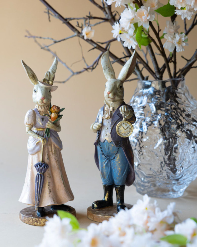 Välklädd kanin som håller ett paraply. Perfekt som dekoration i fönstret eller på soffbordet. | Från A Lot Decoration