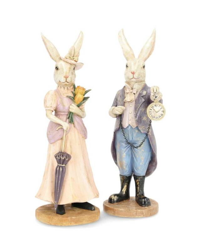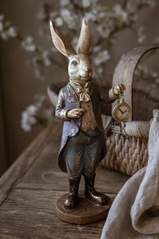Välklädd kanin som håller ett fickur. Perfekt som dekoration i fönstret eller på soffbordet. | Från A Lot Decoration