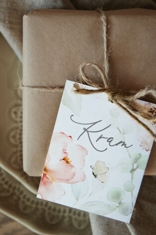 Strl 7 x 9 cm | 200 grams obestruket papper med hål för snöre & band