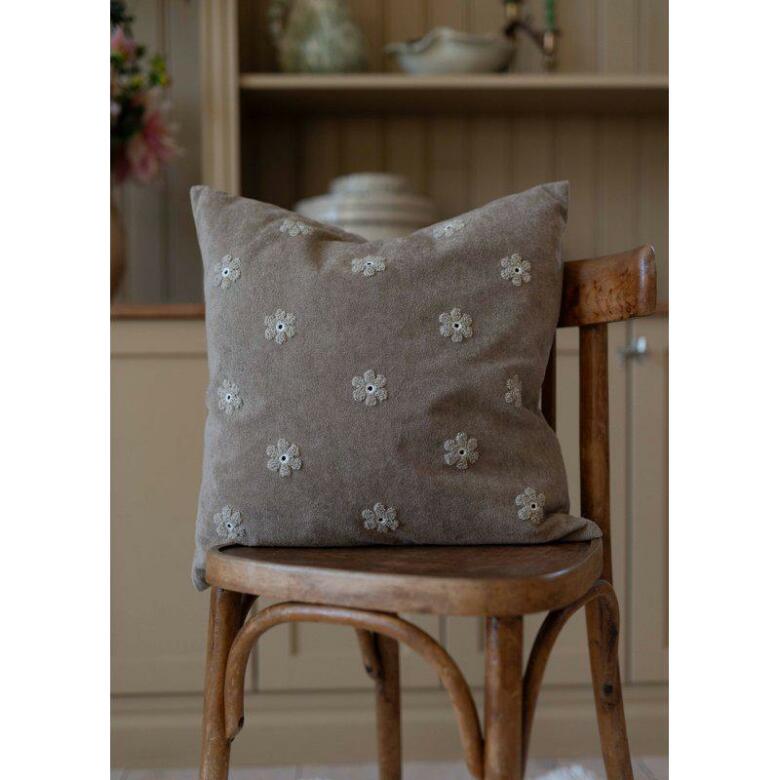 Kuddfodral med små tuftade blommor på som skapar en härligt mjuk och taktil struktur. | Från Fondaco