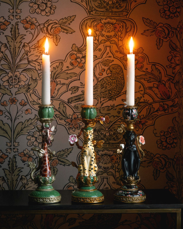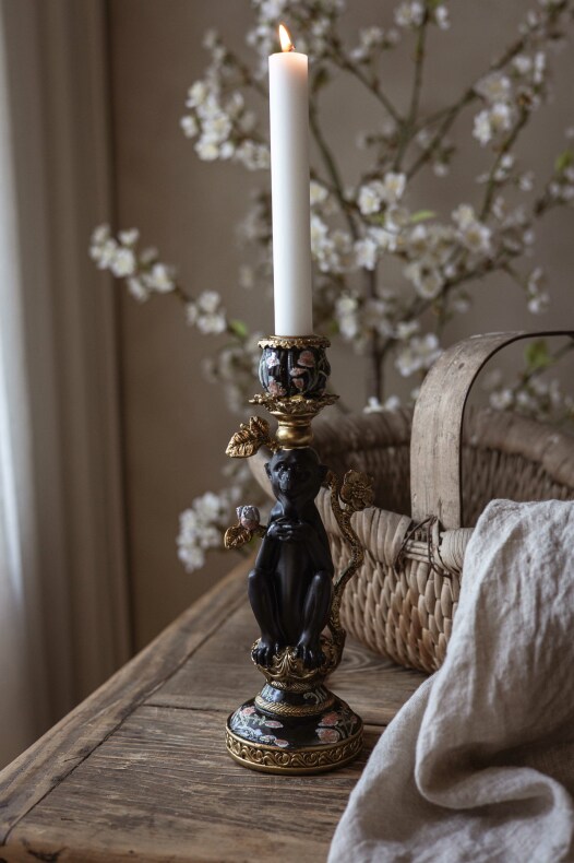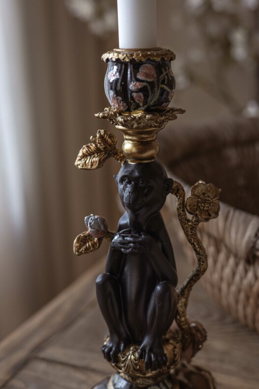 Inred med levande ljus med en härlig ljusstake med en apa | Från A Lot Decoration