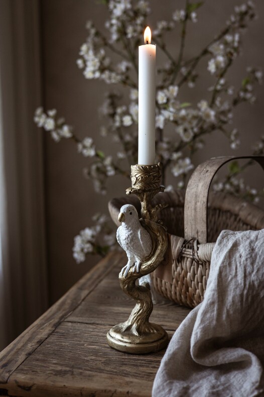 Ljusstake med en fågel på en gren. För dig som vill ha ett exotiskt och lekfullt inslag i inredningen | Från A Lot Decoration