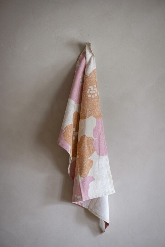 Kökshandduk i 100% bomull med ett storblommigt mönster som för tankarna till retrostilens lekfulla färger och former. | Från Fondaco