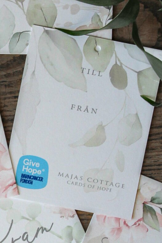 Majas Gåvkort är framtagna med stor omsorg för att skänka hopp, glädje och tröst i kampen mot barncancer.