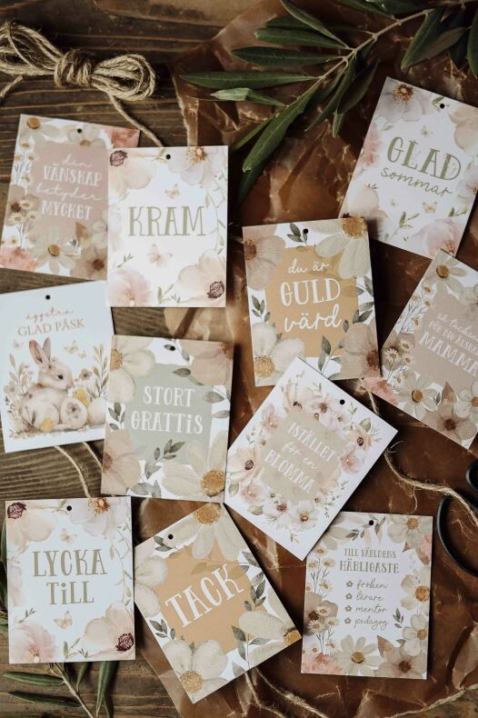 Strl 7 x 9 cm | 200 grams obestruket papper med hål för snöre & band