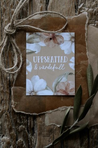 Strl 7 x 9 cm | 200 grams obestruket papper med hål för snöre & band