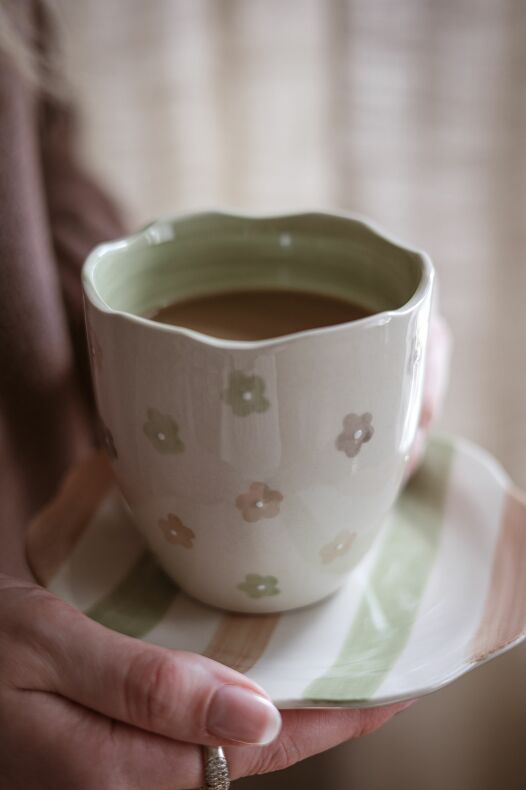 Ljuvlig mugg med handmålat mönster i glada härliga färger