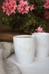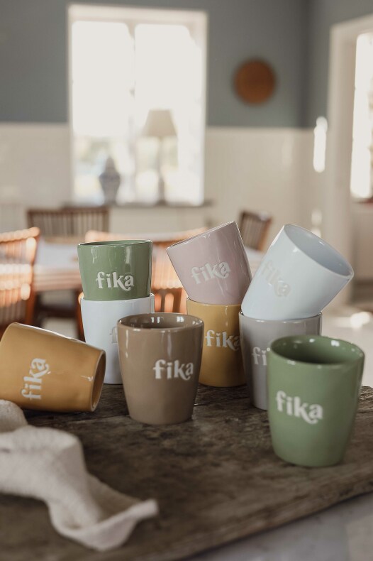 Ljuvliga muggar i fina basfärger med silkscreen text i keramiken