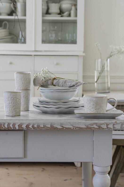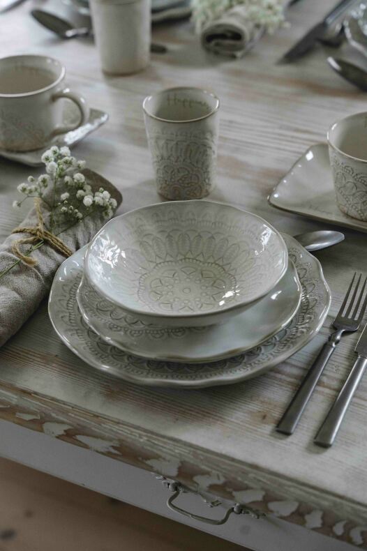 Vår handgjorda stengods serie med präglat mönster i vacker levande finish.