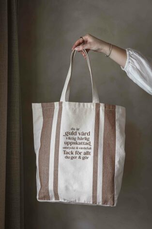 Majas tygpåsar passar perfekt i vardagen – till shopping, utflykter, jobb, strand eller som gåvopåse, samtidigt som de är en del av vårt arbete för Hjärnfonden där vi älskar olikheter och omfamnar det unika.