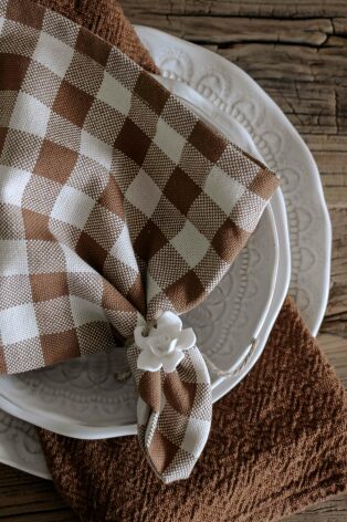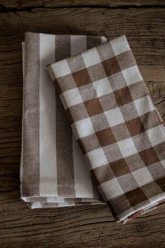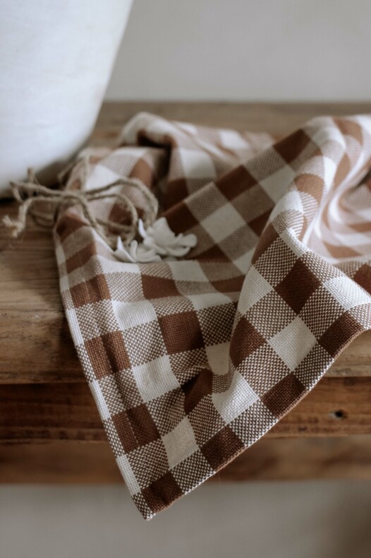 100% vävd fin bomullskvalitet med mysiga färger av Sand och Kanel