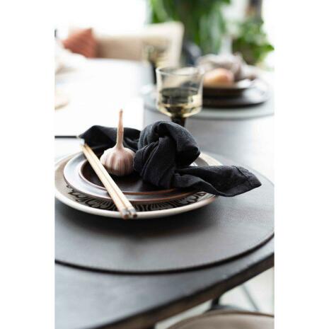Fin bordstablett i en modern rund form. Ytan på bordstabletten är gjord för att efterlikna äkta läder, detta tillför en elegant känsla till din dukning. Samtidigt är den enkel att rengöra och underhålla. | Från Fondaco